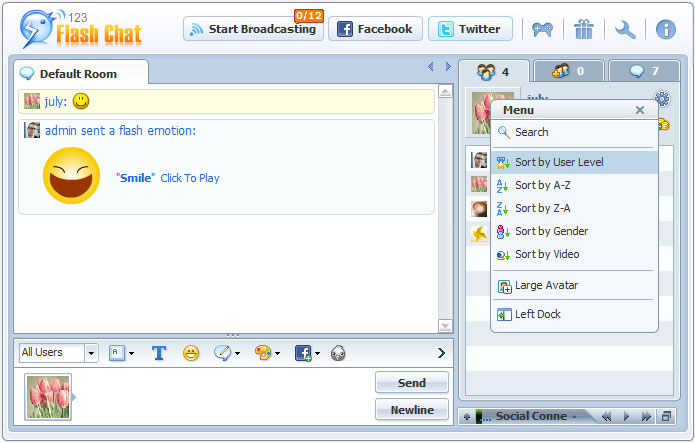 With the traffic boost to your chat service, the search function is in high demand. Therefore it's added to the user list, friend list and room list. Click the screw icon to perform a search. (Fuzzy Search is supported too.) Five kinds of sorting order of the user list will also facilitate the user search.