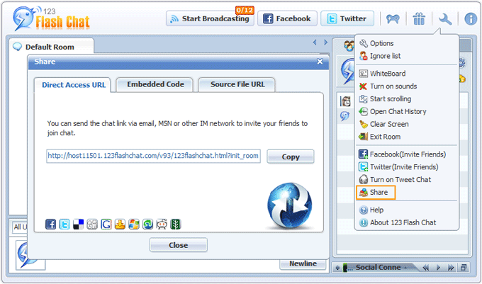 Here you can set the direct access URL of the current room. Then your users in this room may share the chat room URL with his/her friends and they may click the URL to enter this room for chatting. While if you don't configure it, it doesn't matter. The chat end will generate the "Direct Access URL" automatically. To see the effect, you can view the following picture.