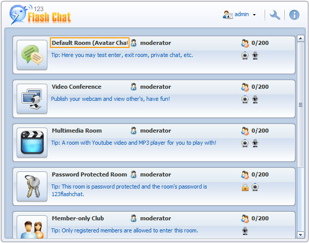You can define the room logo here. Choose a logo from the eight room logos collection. And also there are two ways to custom the room logo: using a web image or uploading a local image.