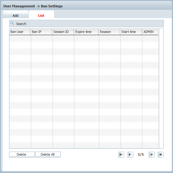 Input the user name, click Add, all users that been banned will appear in the list tab.