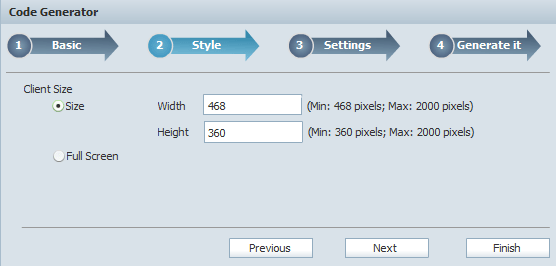 9.Click Finished to generate code. 10.Click Copy to copy the embedded code.