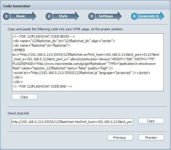 Code GeneratorCode Generator provides a simple way to generate the embeded code for your chat: