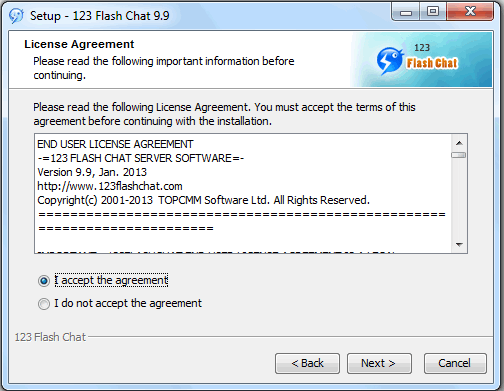 1. Download the latest Windows version of 123 Flash Chat Software at: http://www.123flashchat.com/download.html.