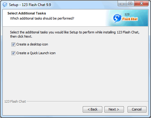 7. Click Next to create a desktop icon and create a quick launch icon, which are the shortcuts to enter the chat. If you don't want to create such shortcuts, please uncheck the selected items.
