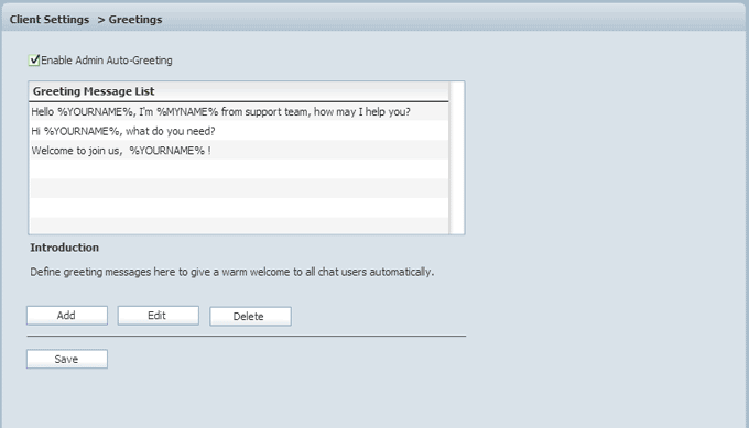 Auto-greeting messages can be defined here to give a warm welcome to all chat users.