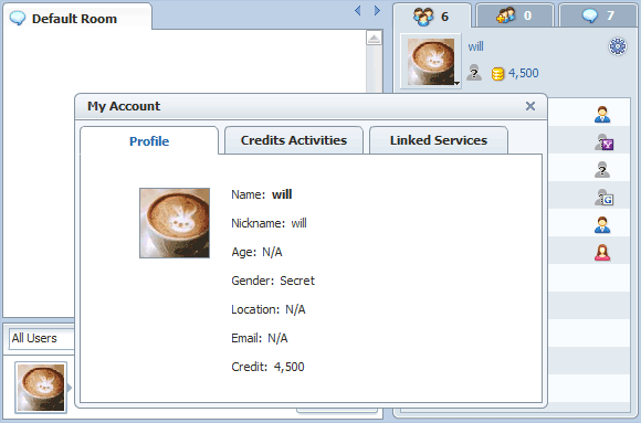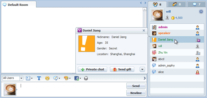 Trigger Profile Panel To trigger profile panel, please check "Popup profile panel when mouse over username in user list", then when mouse over a username, the user's profile panel will pop up.