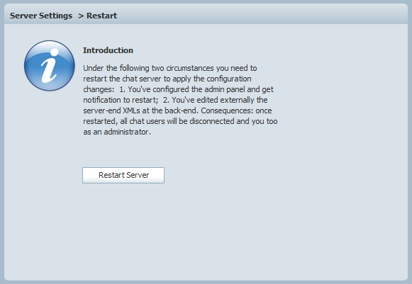 Here, you can restart the chat server. You need to restart the chat server to apply the configuration changes under the following two circumstances: