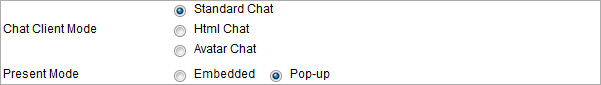 3. Various chat clients and different open modes You need to choose a chat client according to your need, as following: Standard Chat (standard, with full features), Html Chat (simple and neat) Avatar Chat (with walking cartoon figures). Also please set the chat client presents embedded or popup.