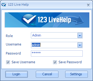 Access Admin PanelClick 123LiveHelp icon in the desktop, and log in as an administrator.