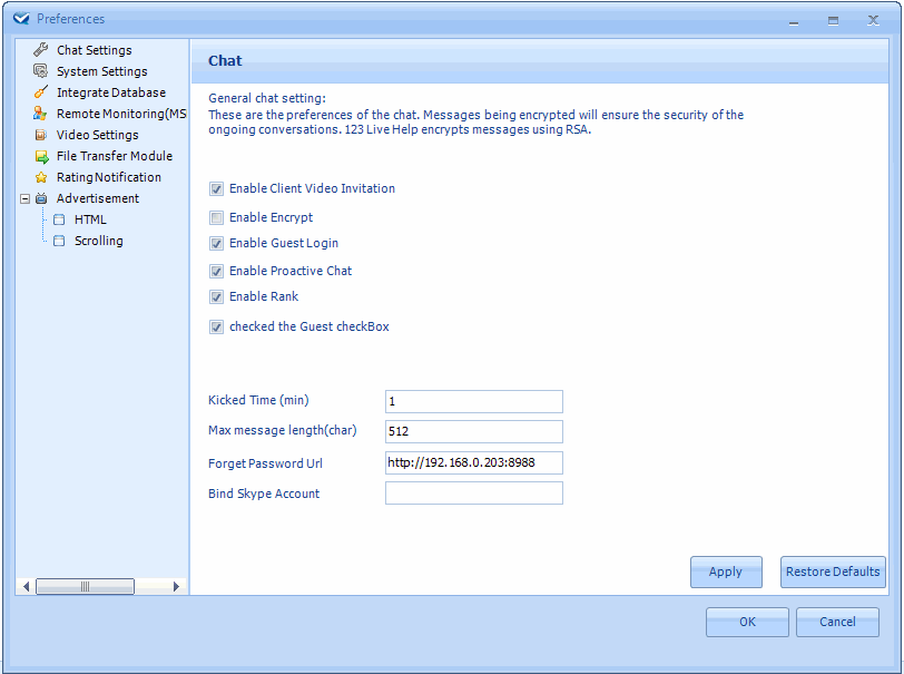 Note: If you bind a skype account with 123 Live Help, you should login the skype with that account when you use 123 Live Help to communicate with skype users.