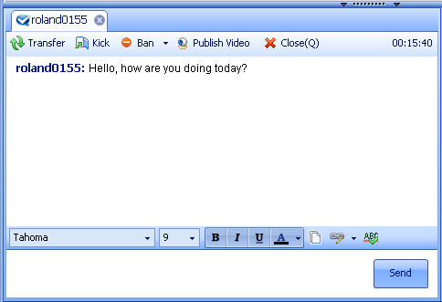 You may initialize live help by double clicking a username in the customer list or right-click the customer and choose Pick up the chat, a chat panel will appear at the left bottom of the panel.