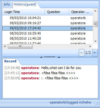If an operator feels the need to view the conversation about a specific topic, enter the keyword in Keyword textbox and click Search, the related conversation records would appear in Record tab. Related links: