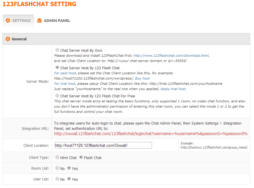 Server Modes 123 Flash Chat provides three options for webmaster, free trial license, free hosting or paid ones. Click here to get more details for free chats. Remark: Oxwall Introduction - Oxwall is unbelievably flexible and easy to use PHP/MySQL social networking software platform.
