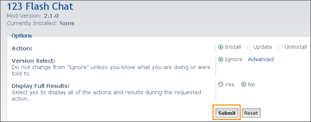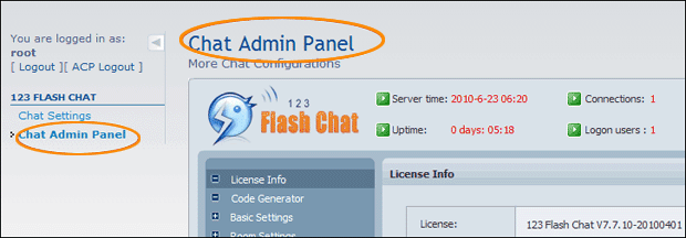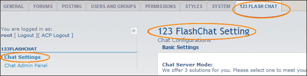 You need to add some codes, please refer to install.xml file. (This file is in phpbb_mod_for_123flashchat.zip) Thirdly , enter phpBB ACP and you will find "123 FLASH CHAT" tab, click it to enter the setting panel of phpBB chat module, configure parameters.