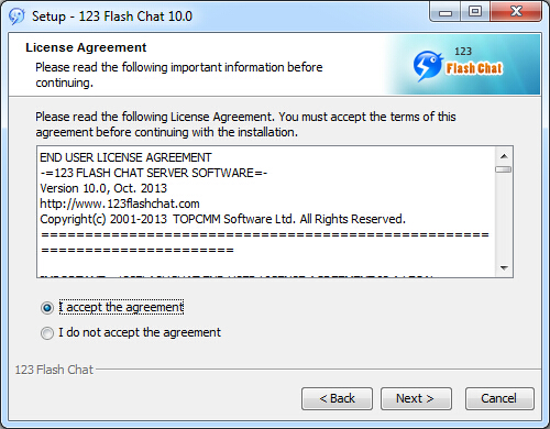 To install 123 Flash Chat Software on